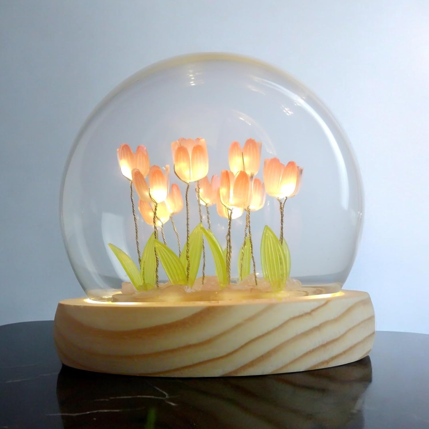 Tulip Night Light with Removable Glass Globe - Battery-Powered Flower Lamp for Desk or Table - Decorative Tulip Lamp for Nature Lovers Easy-Clean Design - Elegant Home Décor Pink Tulip